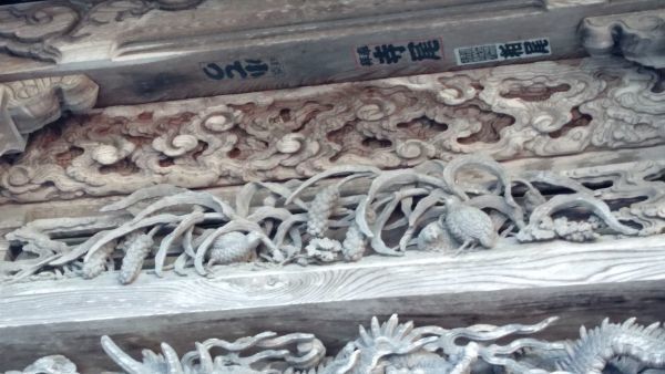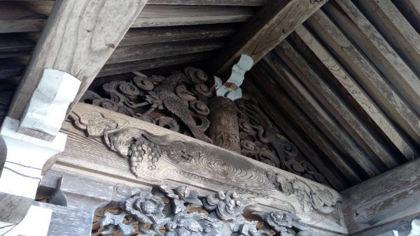 妻虹梁には、ブドウ(あるいは藤)が彫られています。めずらしい題材だと思います。