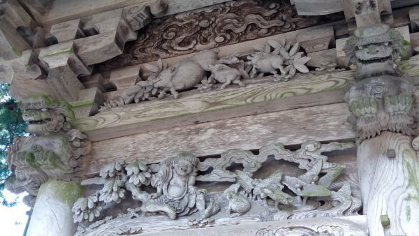 現在の境内や社殿は明治以降に整備されたもので、手水社と随神門が市指定有形文化財となっています。とくに随神門は立川流の彫刻で飾られ、その派手さから日光の陽明門にならって「裕明門」と呼ばれます。