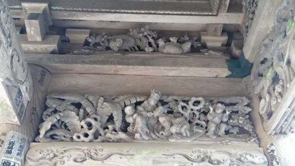 飛貫虹梁の上の欄間は、正面と同様に唐獅子。
