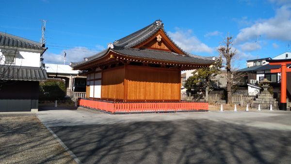 境内西側には、神楽殿と思しき社殿が東面しています。