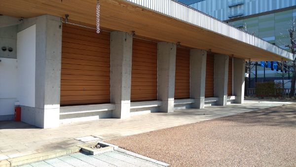 前面はシャッター(鎧戸)が下りています。