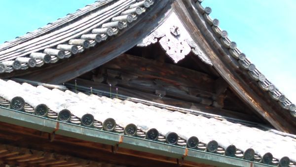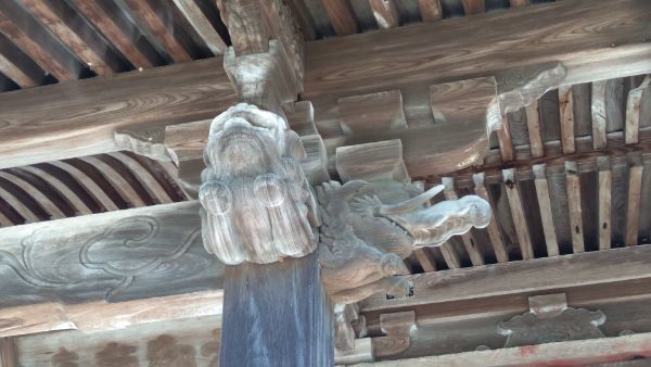 妻飾りは豕扠首で、その手前に竜の彫刻がかかげられています。