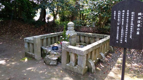 兄の信忠に仕えて戦功を挙げましたが、本能寺の変ののち清洲会議で豊臣秀吉と対立し、賤ヶ岳の戦いで柴田勝家に味方したため、当地で切腹させられます。