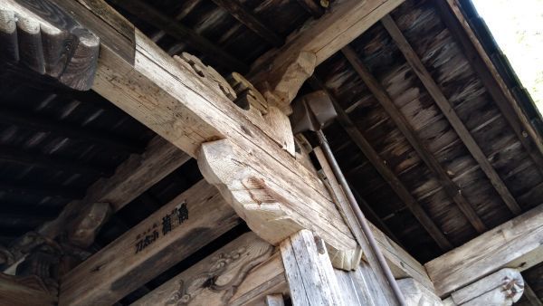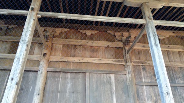 蟇股の上には巻斗と実肘木がありますが、蟇股が妙に小ぶりに造られているせいか、ややアンバランスな印象。言いかたを変えれば、地方色ゆたかな作風。