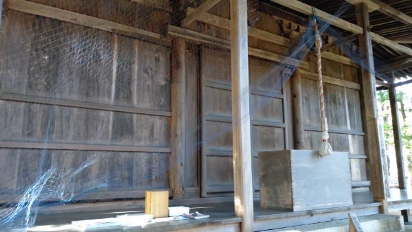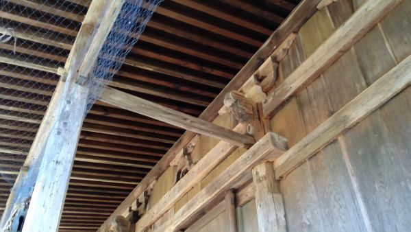 内部向かって左。天井はなく、化粧屋根裏。