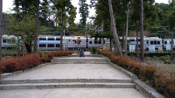 境内入口は北鎌倉駅のとなりにあり、参道が横須賀線によって分断されています。