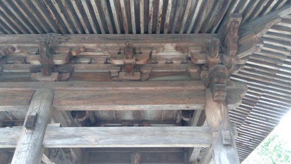 下層内部の通路部分には虹梁が渡され、虹梁の中央には大瓶束が立てられています。