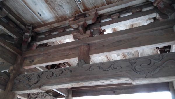 妻飾りは二重虹梁。大虹梁の上には蟇股や大瓶束が使われています。