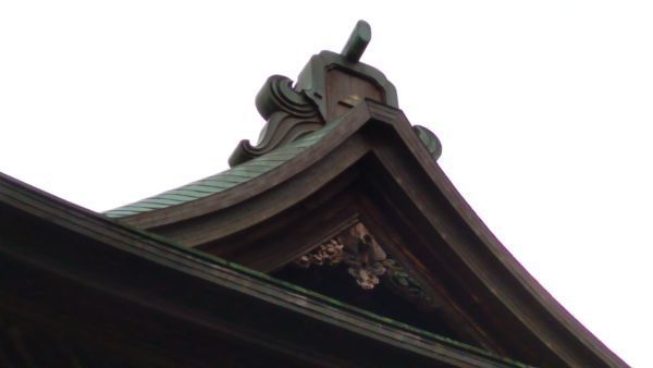 正面からだと宝形にも見えますが、側面から見ると短い大棟が前後に伸びていて、寄棟であることがわかります。