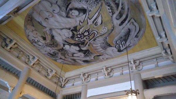内部には大きな鏡天井が設けられ、竜が描かれています。