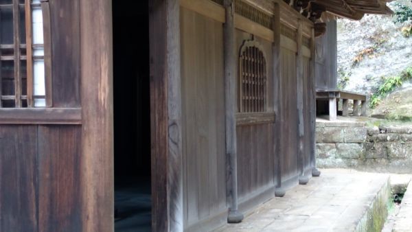 側面の柱間は5間あり、火灯窓や縦板壁が使われています。