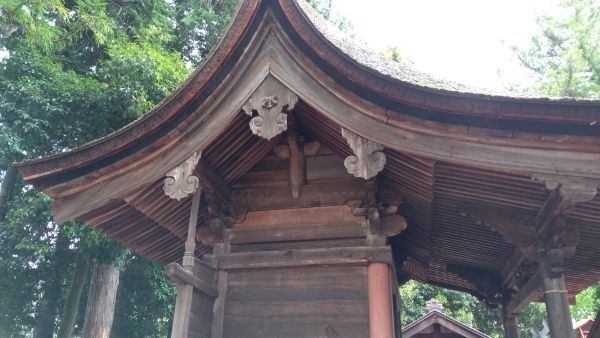 現在の境内は古いものではありませんが、本殿は江戸前期の造営で、市の文化財に指定されています。本殿は二間社というめずらしい様式で造られ、屋根は桧皮葺が維持されています。