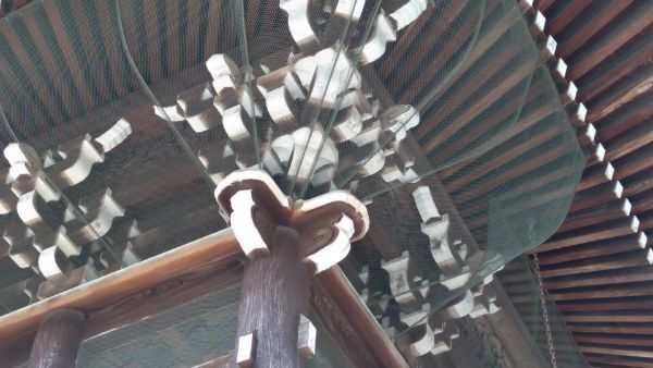外陣内陣の境界には大きな梁がわたされ、梁の周囲には彫刻や組物などがびっしりと配されていました。