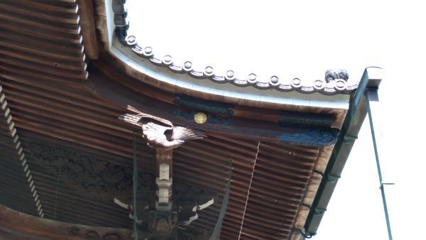 正面の入母屋破風。瓦のひとつひとつに宝珠の意匠があしらわれています。