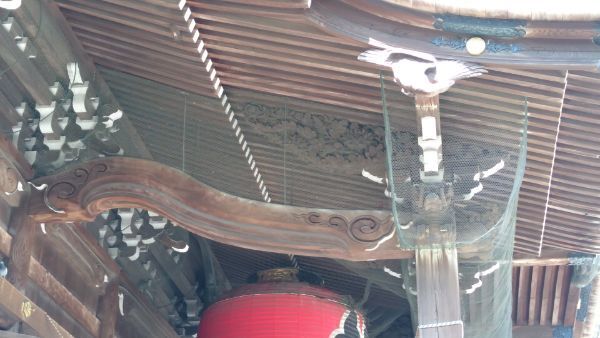 向拝柱の上では、手挟が軒裏を受けています。手挟は菊の籠彫り。