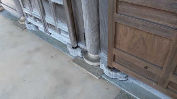 礎石のすぐとなりには藁座。土台の横木に取り付けられています。