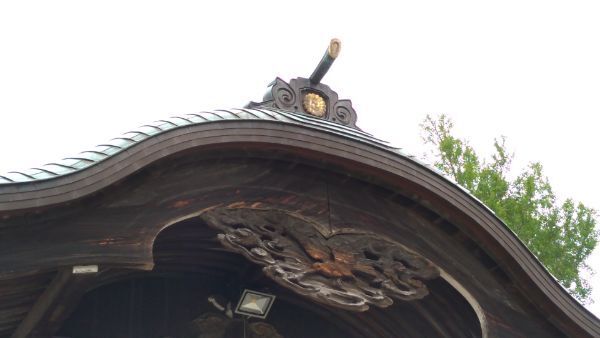 唐破風の小壁の部分には、笈形付き大瓶束が置かれています。笈形は雲の意匠。
