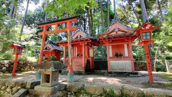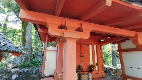 本堂と五重塔のあいだには、3棟の境内社が東面しています。