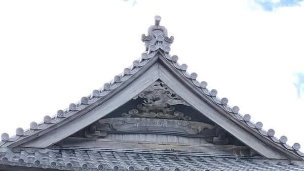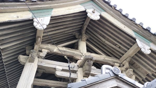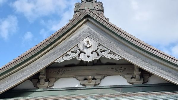 妻飾りは、虹梁と大瓶束らしきものが見えますが、懸魚の影になってしまいよく見えず。