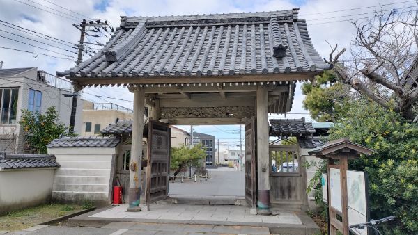 光明寺の境内は北西向き。入口は住宅地の生活道路に面しています。