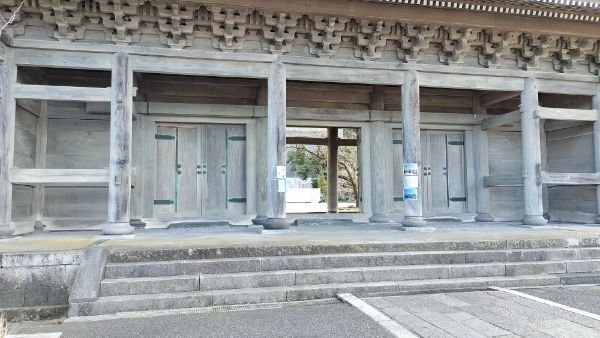 総門をくぐり駐車場の先へ進むと、巨大な山門がそびえ立っています。