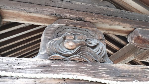 虹梁中備えには彫刻がありますが、暗くて詳細を観察できず。