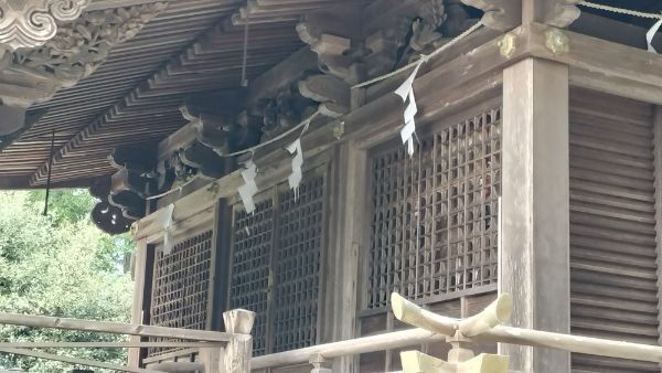 虹梁中備えには花の彫刻がありますが、しめ縄がかかっていてよく見えず。