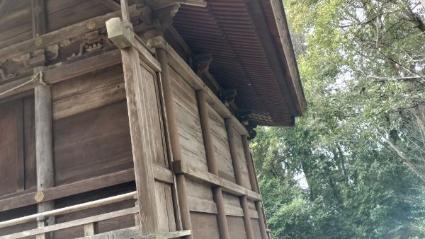 1626年(寛永三年)造営*1。1850年(嘉永三年)に当地へ移築され、前室部分の蟇股と木鼻が改変されたようです。また、1992年に桧皮葺から銅板葺へ改修されています。*2