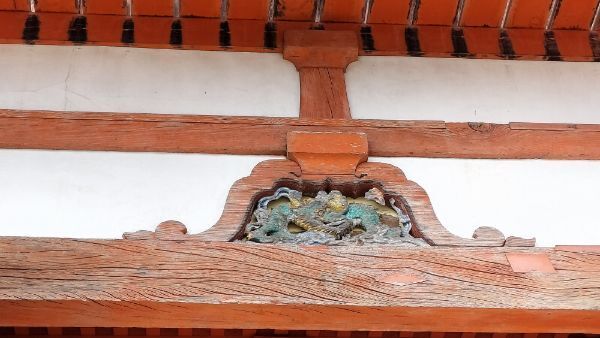 案内板*2によると1889年に上層が崩落したため応急処置として屋根を切妻にし、1996年の解体修理でほぼ当初の形態に復元されました。よって、上層は当初のものではありません。