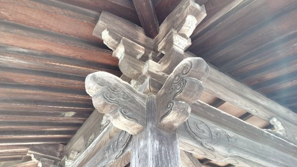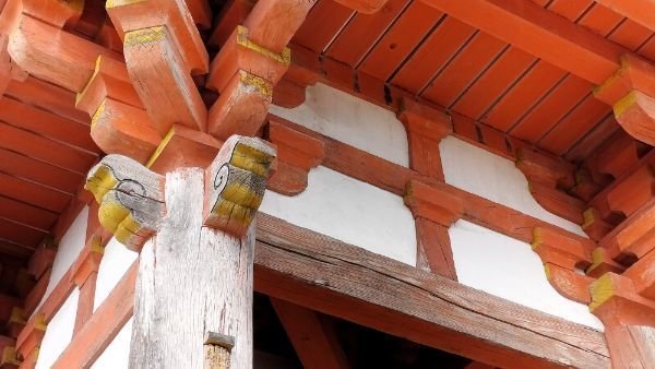 柱はいずれも円柱。軸部は貫でつながれ、隅の柱の上部に禅宗様木鼻がついています。