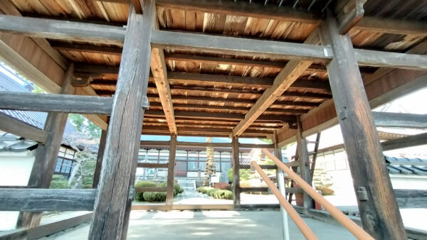 上層の背面は、3間とも縦板壁。縦板壁は禅宗様の意匠です。