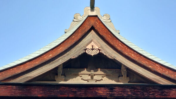 妻飾りは、影になって見づらいですが、虹梁の上に大瓶束が立てられています。