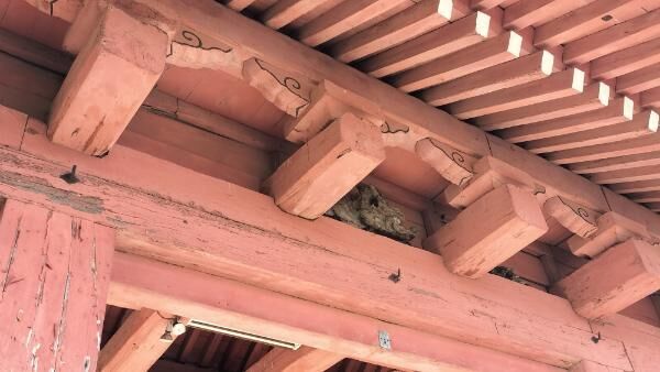 頭貫の下側には、下端を火灯状の曲線に削った板材が添えられています。
