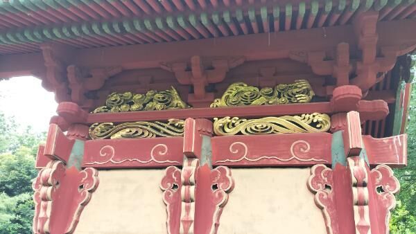 内部の通路部分には太い虹梁がわたされています。虹梁には金色の彩色で雲が描かれています。
