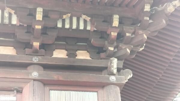 虹梁木鼻の下には雲状の板材があります。その下には腰貫が通り、虹梁のものに似た角ばった木鼻がついています。
