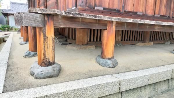 なお、本堂後方には民家(おそらくご住職のお家)が隣接しており、立入禁止となっていたため観察はできませんでした。案内板によると、背面は連子窓と板壁が使われているようです。
