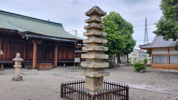 当初は十三重塔だったと考えられ、後世の改造で現在の九重塔となったと思われます。また、頂部の法輪が欠損しています。