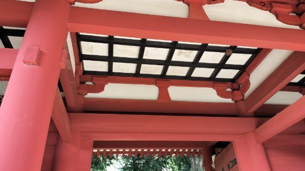 ふだんは拝殿の前の扉が閉じていて、開扉されるのは日曜日と祝日だけのようです。とはいえ、閉扉していても社殿を遠目に見ることは可能です。