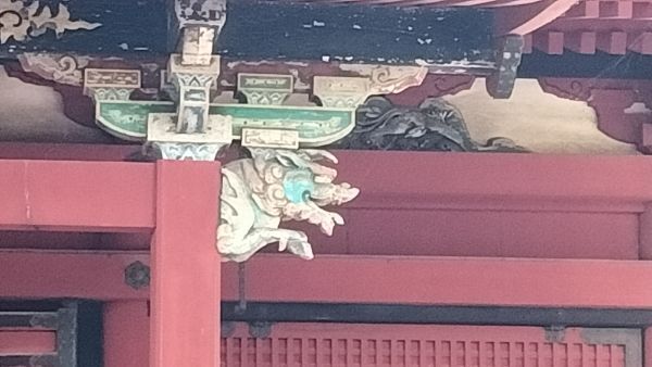 間近で見られなかったため詳細な観察はできませんが、向拝柱の木鼻の唐獅子、虹梁中備えの蟇股が確認できます。