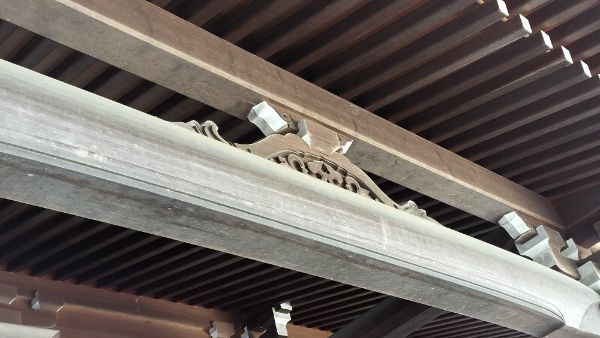 虹梁は絵様が浮き彫りされています。軒桁の中央部も、虹梁のような眉欠きと絵様があります。