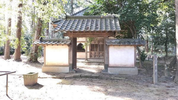 一間一戸、薬医門、切妻造、桟瓦葺。左右袖塀付。